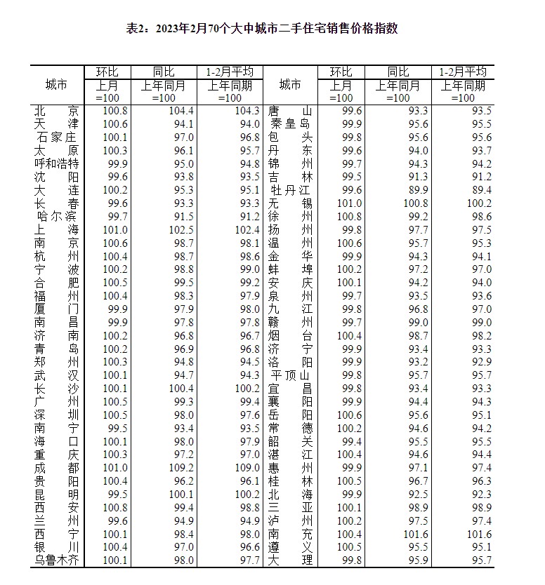 同比方面,房價漲幅仍顯弱勢。據(jù)國家統(tǒng)計局測算,2月份,一線城市商品住宅銷售價格同比上漲、二三線城市同比降幅收窄。70個大中城市中,新建商品住宅銷售價格同比上漲城市有14個,比上月減少1個;二手住宅銷售價格同比上漲城市有7個,比上月增加1個。
