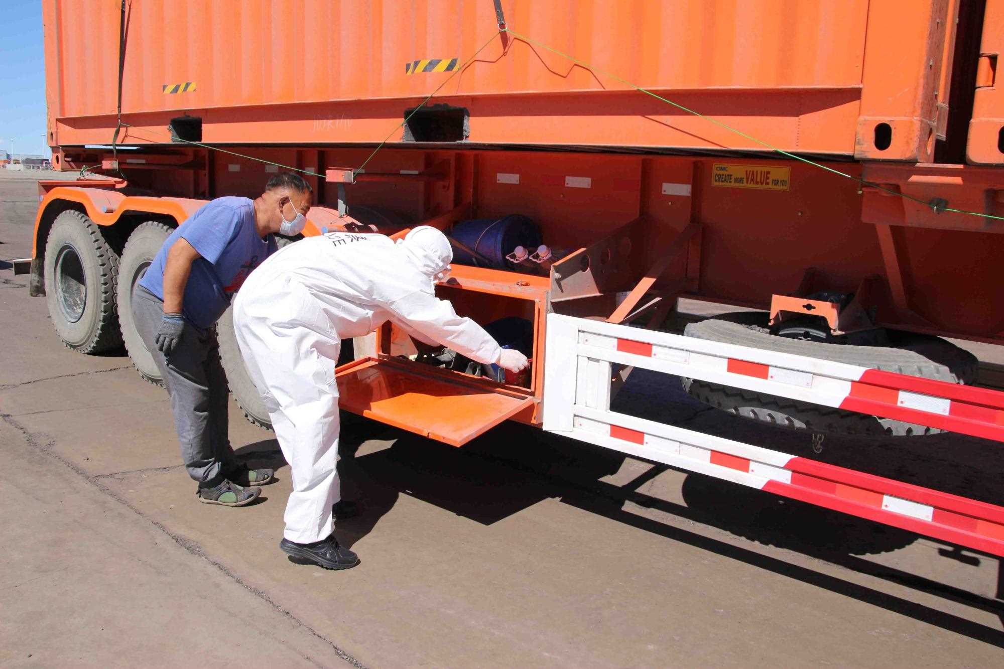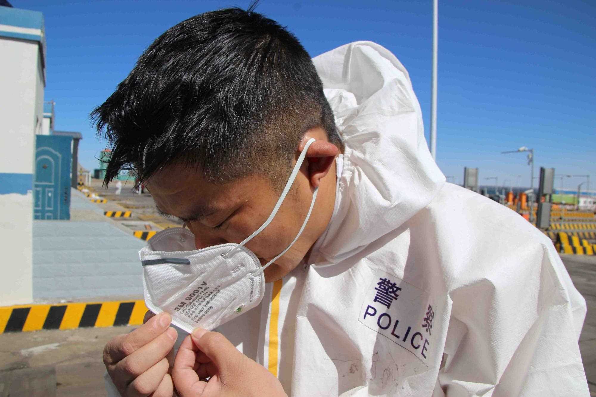 近期策克口岸的溫度持續(xù)增加至30攝氏度以上,而在通行的重型卡車(chē),溫度還要更高,下午15點(diǎn)溫度計(jì)地表溫度測(cè)量最高可達(dá)40攝氏度。這無(wú)疑讓的查驗(yàn)工作更為繁重。更重要的是,由于疫情影響每名民警在查驗(yàn)期間都要穿上防護(hù)服,在高溫下,由于防護(hù)服是密閉的,防護(hù)服里仿佛成了蒸箱,用不了十分鐘,民警就會(huì)汗流浹背,防護(hù)服黏在身上又粘又癢,一班勤務(wù)近2個(gè)小時(shí),必須要等過(guò)了勤務(wù)才能休息,而民警還要完成車(chē)體的查驗(yàn)工作,包括工具箱、馬槽等處,絲毫不敢馬虎。