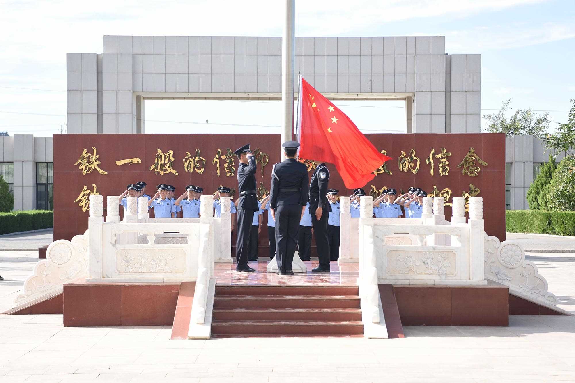 為緬懷抗戰(zhàn)英烈、弘揚(yáng)抗戰(zhàn)精神,進(jìn)一步強(qiáng)化民警愛國主義教育,凝聚士氣警心,9月3日上午,阿拉善邊境管理支隊舉行紀(jì)念抗戰(zhàn)勝利75周年升國旗儀式暨重溫入警誓詞儀式。