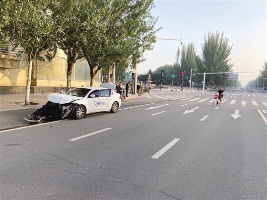 接到報(bào)警后,青山區(qū)交管大隊(duì)事故中隊(duì)民警趕往現(xiàn)場,看到兩車不同程度受損,兩車內(nèi)各有一名駕駛員,二人不同程度受傷,所幸兩名駕駛員都系了安全帶,均為皮外傷。民警介紹,“經(jīng)過調(diào)查,當(dāng)時(shí)面包車提前采取了兩次制動措施,并且已經(jīng)通過了路口中心點(diǎn),而白色共享汽車通過路口并未采取任何措施,也沒有進(jìn)行觀察。因此,駕駛共享汽車的駕駛員負(fù)該起事故的主要責(zé)任,小型面包車負(fù)次要責(zé)任?!泵窬硎荆掳l(fā)前這兩輛車只要有一輛“稍安勿躁”,事故就可以避免。(記者 宋美慧 攝影 馮超)