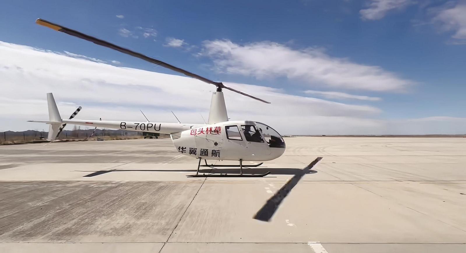 羅賓遜R-44直升機蓄勢待發(fā)。