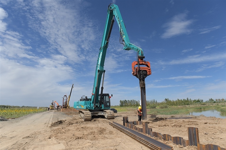 在專業(yè)車輛和設(shè)備的輔助下,工人們有的灌注混凝土,有的安裝護(hù)筒,有的下鋼筋籠,有的澆筑樁基,一派繁忙的景象?!澳壳肮こ桃呀?jīng)進(jìn)入反循環(huán)鉆機(jī)樁基和承臺(tái)的施工階段,五原特大橋等橋梁、路基重點(diǎn)工程施工正在有序推進(jìn)?!敝需F二十五局包銀高鐵工程項(xiàng)目部副經(jīng)理蔣才徉告訴記者,“今年我們將完成100%的樁基、70%的承臺(tái)、90%的路基地基處理、30%的路基填筑以及33%的制梁施工任務(wù)。”