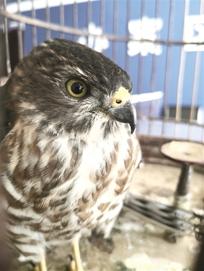 8月19日早上,民警于將雀鷹送往大青山野生動物救護中心,中心工作人員將對其進行觀察和喂養(yǎng),待其體能恢復后放歸自然?!?記者 郝儒冰)攝影/賈德京