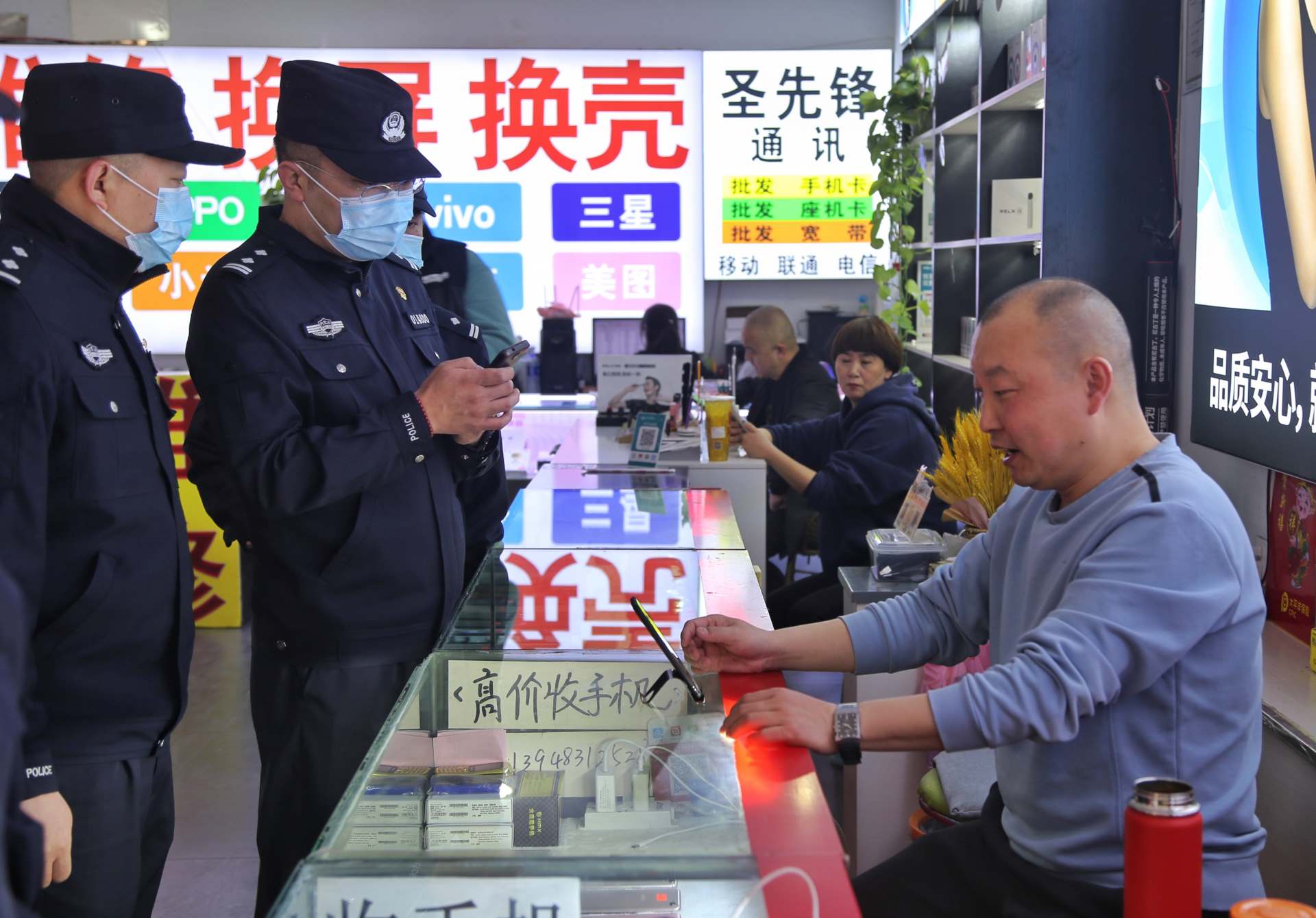 按照預(yù)定方案,行動(dòng)分為四組,兩組對(duì)永和二手手機(jī)市場(chǎng)和眾興二手手機(jī)市場(chǎng)進(jìn)行突擊清查,另兩組以便衣形式對(duì)周圍流動(dòng)收售手機(jī)人員進(jìn)行排查。行動(dòng)期間,民警對(duì)二手手機(jī)銷售店鋪內(nèi)的手機(jī)和工作人員情況進(jìn)行清查,逐一對(duì)照登記臺(tái)賬,嚴(yán)格檢查落實(shí)情況,同時(shí)向經(jīng)營(yíng)業(yè)主及市民進(jìn)行法制宣傳教育。此次行動(dòng)共排查登記二手手機(jī)850部,買(mǎi)賣二手手機(jī)人員50余人,檢查二手手機(jī)商戶22家,暫扣未履行登記手機(jī)30余部。