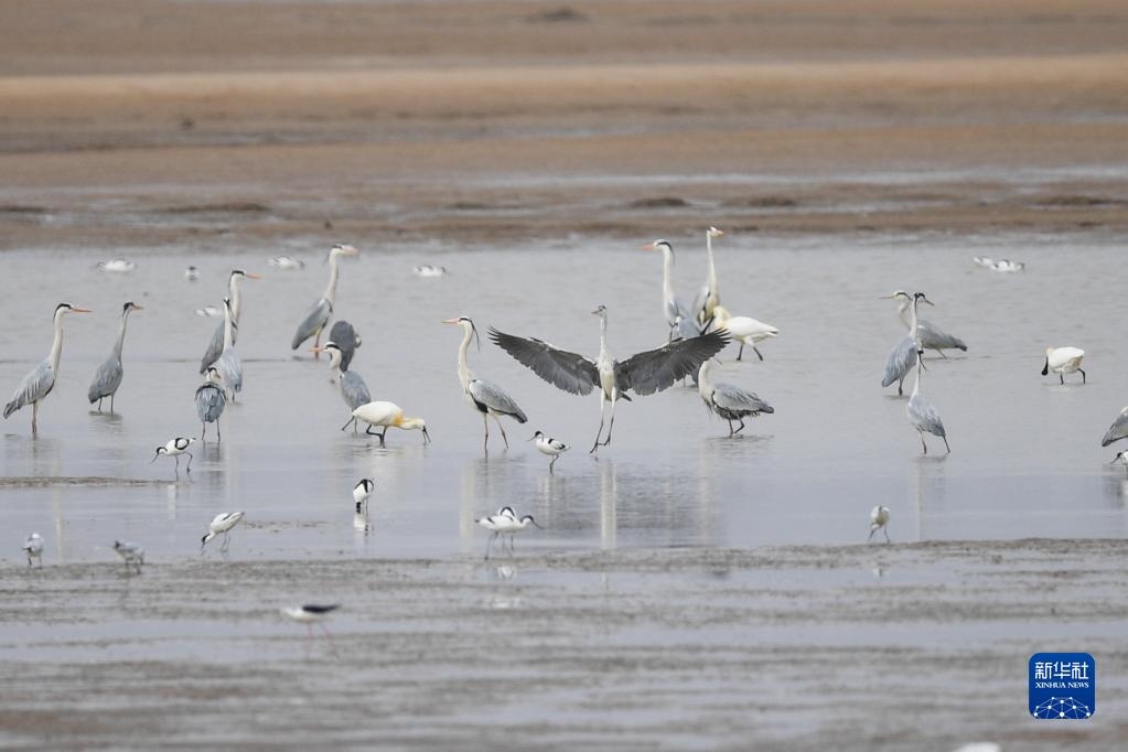 隨著氣溫回升,內(nèi)蒙古呼和浩特市土默特左旗海流水庫迎來了大批遷徙候鳥。它們在這里休憩覓食,為海流水庫增添勃勃生機(jī)。