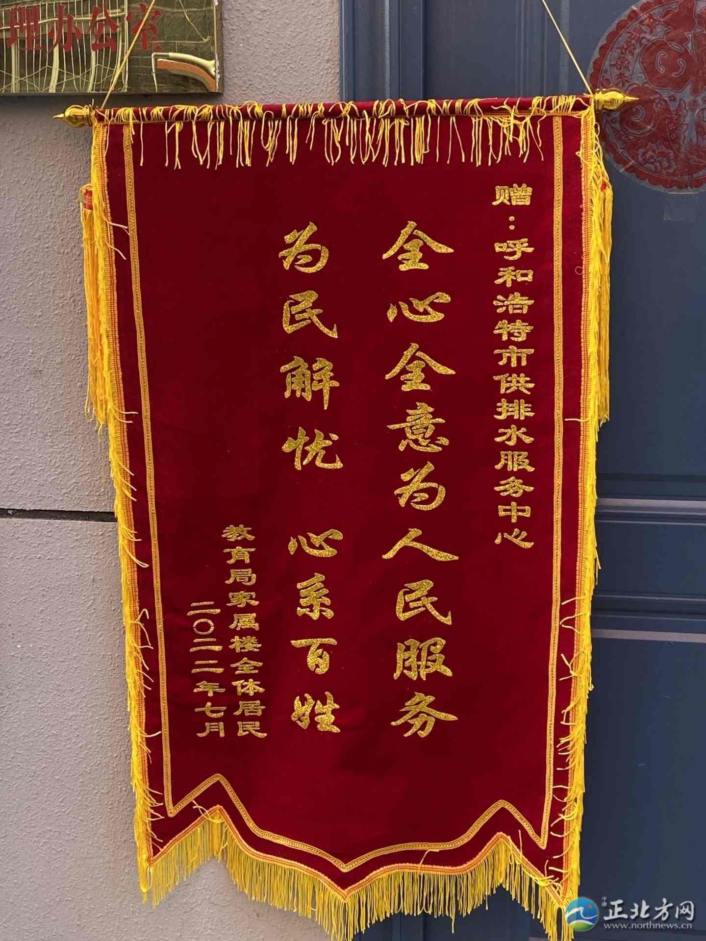 隨后,記者又來到新城區(qū)教育局宿舍樓,該小區(qū)已經改造完畢,居民們已經能正常用水了。為了表示感謝,小區(qū)全體居民特地制作了一面錦旗,派居民代表送到呼和浩特市供排水服務中心。