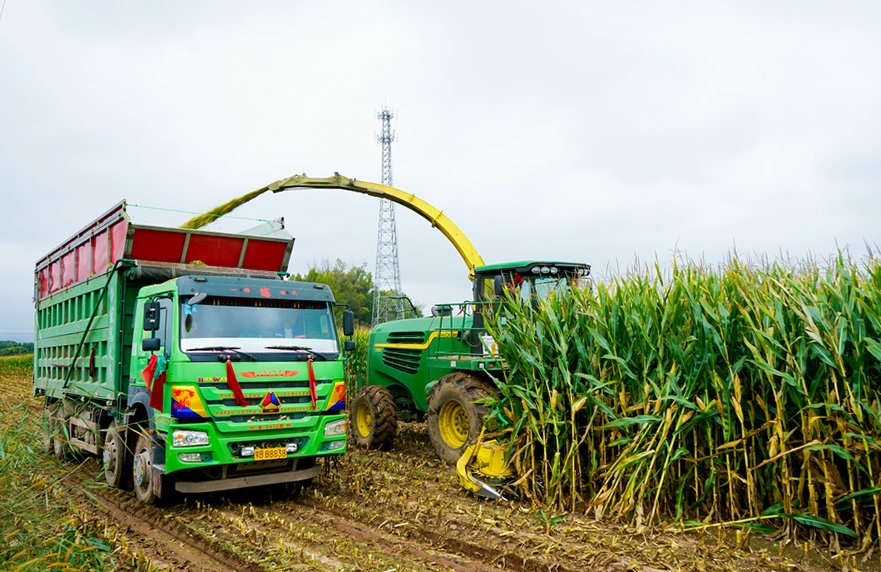 青貯玉米是把玉米植株全部收割下來經(jīng)過切碎、加工后用發(fā)酵的方法制作成青貯飼料的玉米,用來飼喂牛、羊等牲畜。這幾天,土默特左旗青貯玉米陸續(xù)進(jìn)入豐收季,收割工作全面啟動(dòng)。