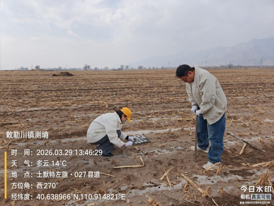 按照氣象觀測規(guī)范,土左旗每年3月至11月全面開展自動土壤水分觀測,實時捕捉土壤水分動態(tài)變化數(shù)據(jù)。同時,為進一步提升監(jiān)測數(shù)據(jù)的精準度,彌補自動化觀測可能存在的偏差,在自動觀測期間,同步開展13次人工取土測墑工作,通過人工采樣、實驗室測量的方式,校準自動觀測數(shù)據(jù),全面掌握不同深度、不同地塊的土壤墑情實況,構(gòu)建起“自動監(jiān)測為主、人工校核為輔”的科學(xué)觀測模式。