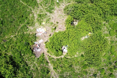 無人機(jī)傳回的非法采挖野生藥材窩點現(xiàn)場畫面。