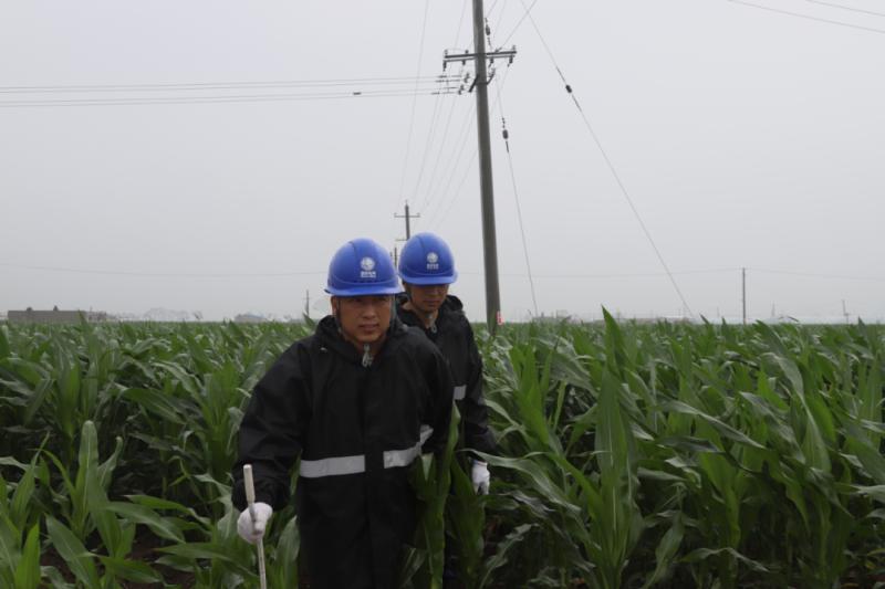 左中公司運維人員在10千伏工業(yè)2線保三南園分03桿進(jìn)行雨后特巡。(攝影:趙昆陽)