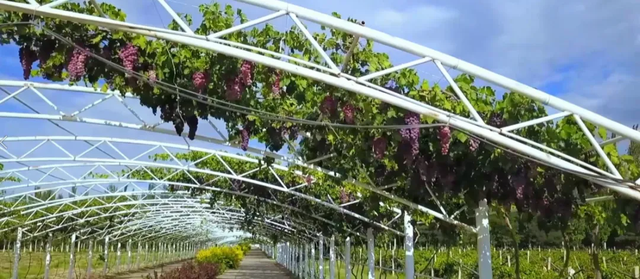 “目前酒莊的釀酒葡萄全部出土,大棚內(nèi)的設(shè)施葡萄預(yù)計在今年7月初就可以上市銷售,露地的鮮食葡萄早熟品種預(yù)計8月中旬開始銷售?!眱?nèi)蒙古吉奧尼葡萄酒業(yè)有限責(zé)任公司綜合部部長石波說。