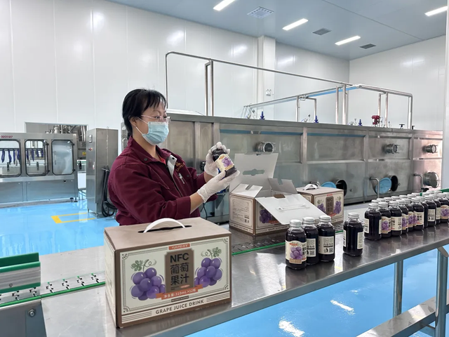 “我們果汁的亮點是百分之百NFC(非濃縮還原)壓榨技術(shù),整個生產(chǎn)線滿負(fù)荷運行后,年產(chǎn)可達(dá)5000噸,預(yù)計產(chǎn)值1.8億元。我們將繼續(xù)拓展葡萄產(chǎn)業(yè)鏈,提高葡萄產(chǎn)品附加值,把葡萄產(chǎn)業(yè)發(fā)展成為富民產(chǎn)業(yè)?!睘鹾J性骑w農(nóng)業(yè)種養(yǎng)科技有限公司行政副總經(jīng)理魏通說。