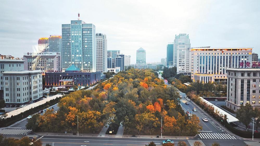 傍晚時分,夕陽西下,天邊被染上了一層溫暖的橘紅色。黃河水面波光粼粼,像鋪滿了碎金;甘德爾山的輪廓在夕陽的映照下顯得格外清晰;城市里的燈光漸漸亮起,與天邊的晚霞交相輝映,構(gòu)成了一幅溫馨而浪漫的秋日晚景圖。