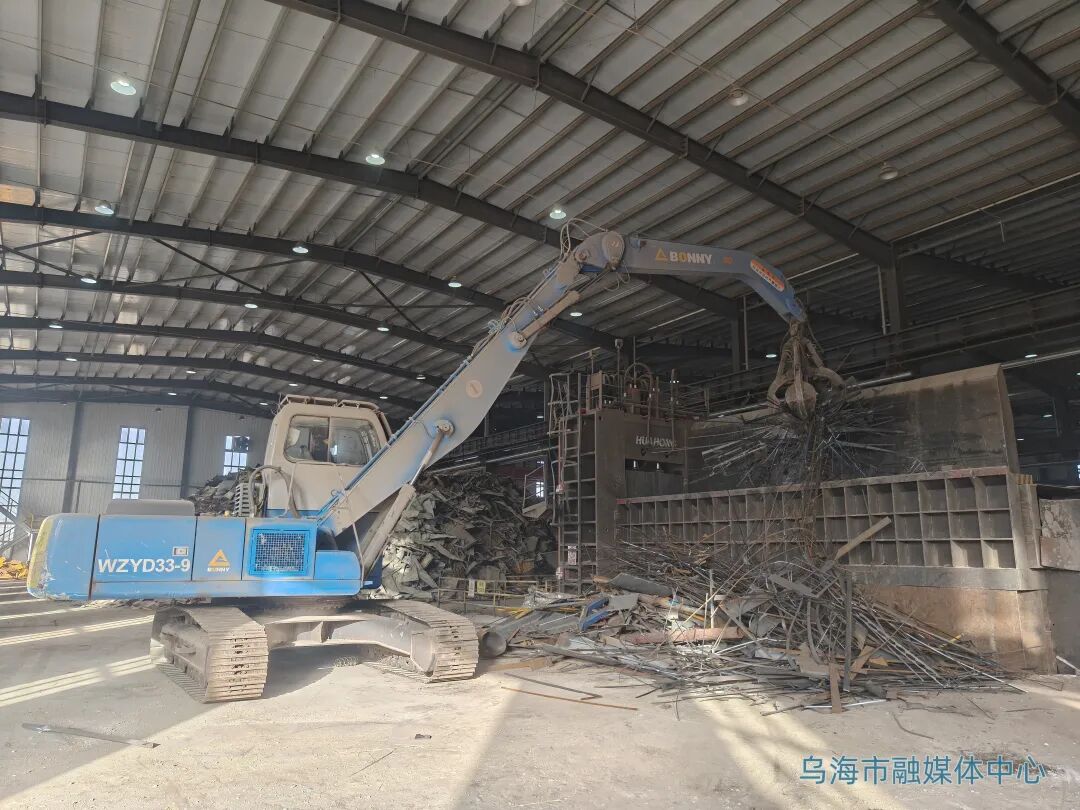 近日,記者來到位于烏海海勃灣高新技術(shù)產(chǎn)業(yè)開發(fā)區(qū)的內(nèi)蒙古萬斯通環(huán)保再生資源回收有限公司,走進廢鋼車間,龍門剪、抓鋼機、電磁起重機等交叉作業(yè),機械轟鳴聲與金屬撞擊聲、破碎聲不絕于耳。