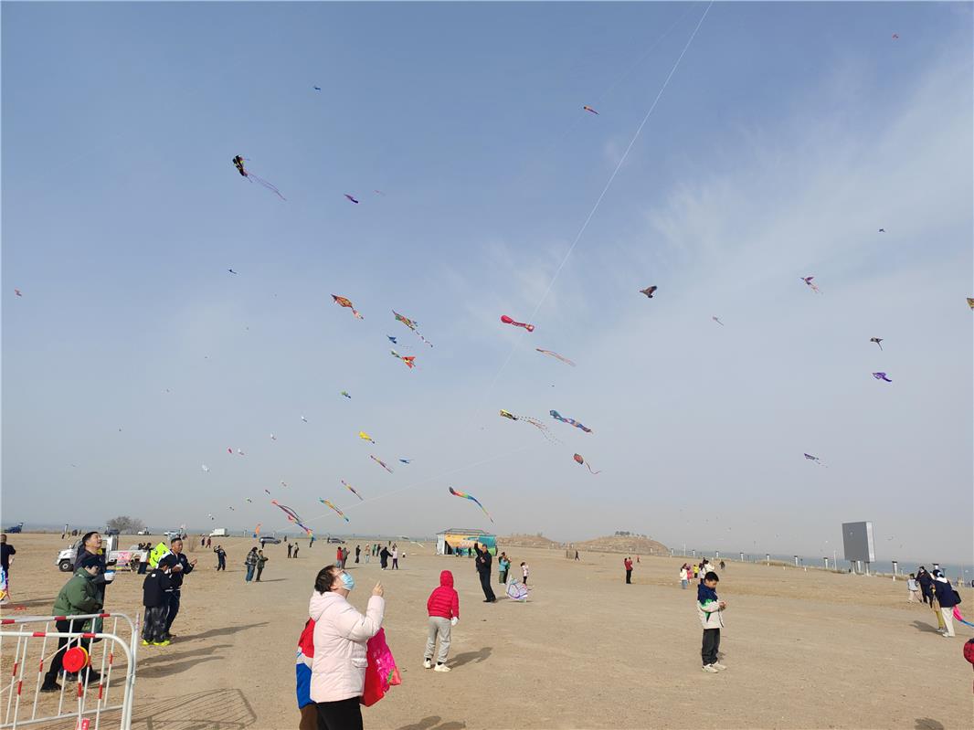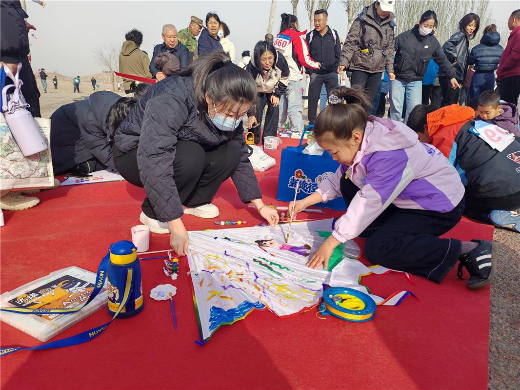 風箏主題區(qū)域也是熱鬧非凡、童趣滿滿,家長和孩子攜手創(chuàng)作,將中國夢、勞動美、烏海地域特色繪于風箏之上,創(chuàng)意十足。與此同時,形態(tài)各異的風箏競相升空,在藍天碧水間翩然起舞,引來陣陣喝彩。