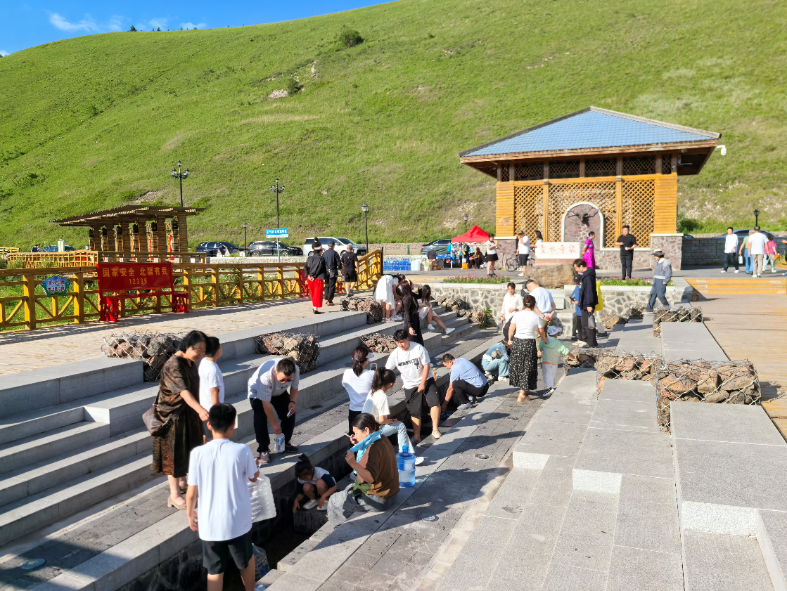 到阿爾山五里泉打泉水的游客不斷