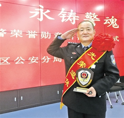 1月8日,在首個中國人民警察節(jié)到來之際,呼和浩特市玉泉區(qū)公安分局舉行“不忘初心 永鑄警魂”——授予退休民警榮譽勛章和新警入警宣誓儀式。今年60歲的楊建恒神采飛揚、豪情依舊,當他身著警服、步履鏗鏘地接過退休民警榮譽勛章時,如獲至寶。