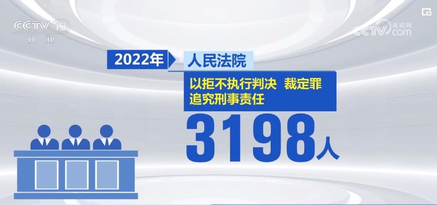2022年,人民法院以拒不執(zhí)行判決、裁定罪追究刑事責(zé)任3198人。下一步,最高人民法院將聯(lián)合公安機關(guān)、檢察機關(guān)開展集中打擊拒不執(zhí)行判決、裁定犯罪專項行動,建立健全公檢法機關(guān)依法懲治拒不執(zhí)行判決、裁定犯罪的常態(tài)化工作機制。