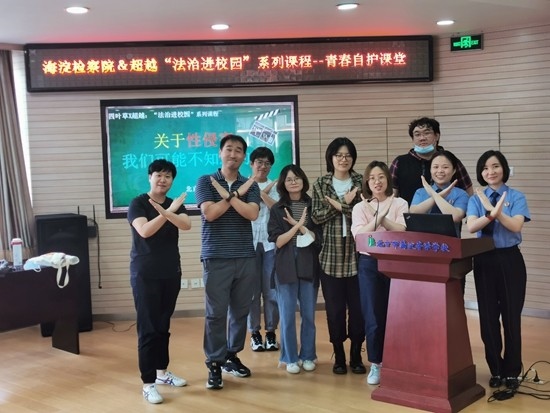 北京市海淀區(qū)人民檢察院與北京超越青少年社工事務所聯(lián)合開展“法治進校園”系列活動,為同學們講解青春自護知識。北京超越青少年社工事務所供圖