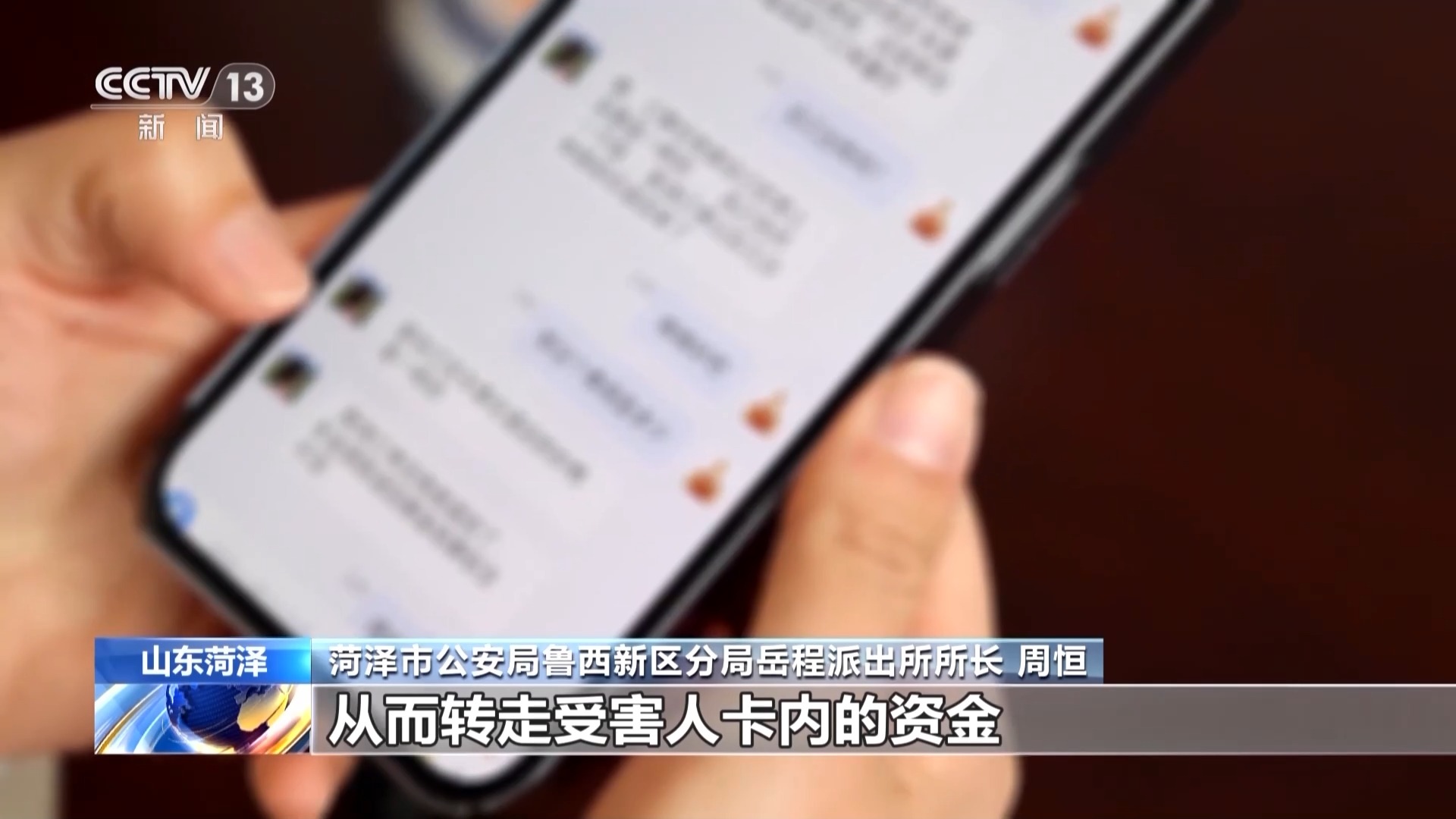 菏澤市公安局魯西新區(qū)分局岳程派出所所長 周恒:“共享屏幕”實質(zhì)就是手機屏幕上顯示的內(nèi)容,能夠讓對方同步看到,包括彈窗顯示的短信、微信、App推送的信息等。也就是說,你在手機上的任何操作,包括輸入的密碼、驗證碼、解鎖的過程等,對方都能實時看見。一旦受害者使用此功能,詐騙人員就能看到受害人手機上的所有信息,從而轉(zhuǎn)走受害人卡內(nèi)的資金。