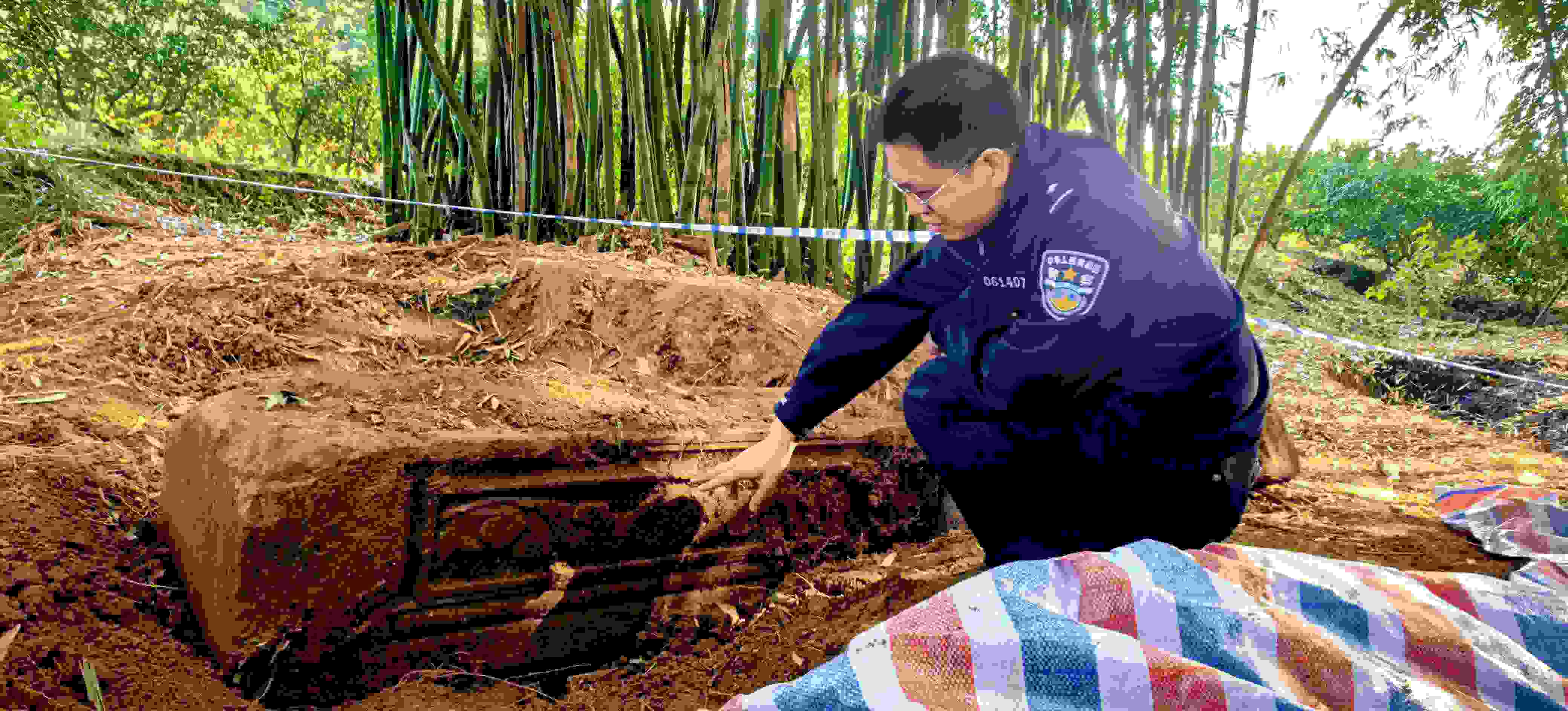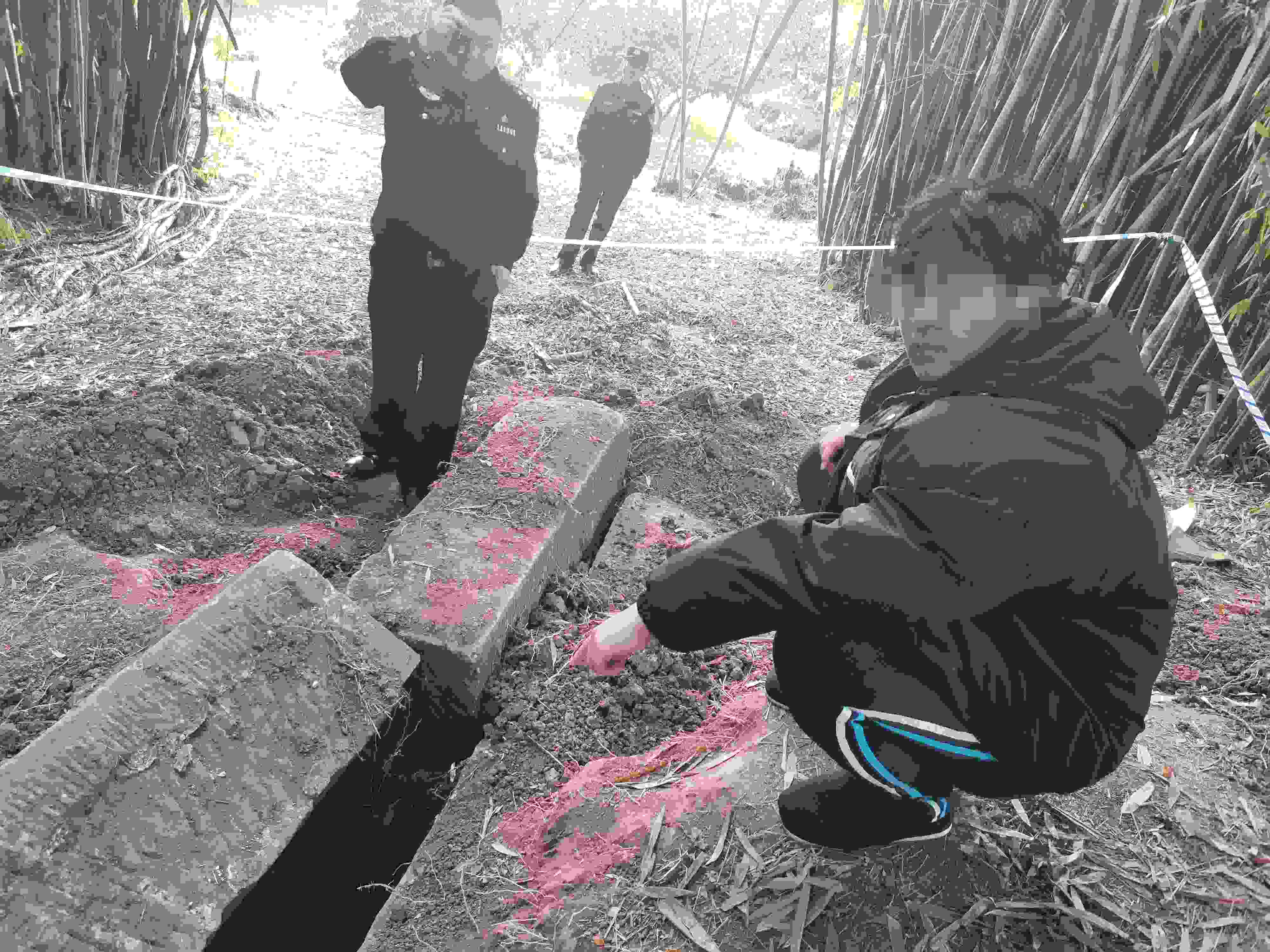 韓某家族的這座祖墳地處一片竹林中,離最近的房屋直線距離不足20米。為此,他趕到現(xiàn)場(chǎng)發(fā)現(xiàn),墓室上的土有多處被挖痕跡,但墓門(mén)上的石頭還沒(méi)被打開(kāi)?!斑@個(gè)地方是條大路,白天也沒(méi)人看到有人來(lái)過(guò)。”韓某懷疑有人盯上了他家的祖墳,想要盜墓,并判斷那些人還會(huì)再來(lái)。