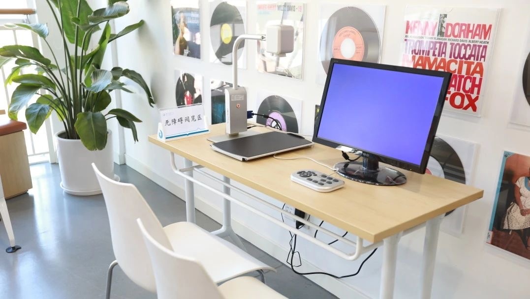 經整改,圖書館各在一樓和三樓設有無障礙閱覽區(qū),增配大字版圖書和手指點讀發(fā)聲書,配置盲人專用電腦助視器、盲文點字顯示器、盲文有聲讀書機和放大鏡。打造有聲閱讀文化體驗陣地“數智圖書館”,視障讀者只需使用數智耳機觸碰感應相應書卡和書籍,就能輕松接觸到千本好書的精華內容,方便快捷地享受與普通人同等的閱讀權益。圖書館還設有無障礙通道、無障礙衛(wèi)生間、無障礙電梯,為視障、腿部殘疾等特殊人群提供安全便利全方位的出入保障。
