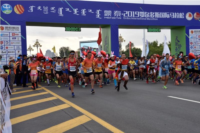 8月24日傍晚,蒙泰·2019鄂爾多斯國際馬拉松在鄂爾多斯市康巴什區(qū)烏蘭木倫湖廣場鳴槍開跑。