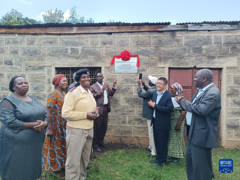 這是10月18日在肯尼亞納庫魯郡馬坦吉提薩村拍攝的掛牌儀式現(xiàn)場。新華社發(fā)(李學(xué)敏攝)