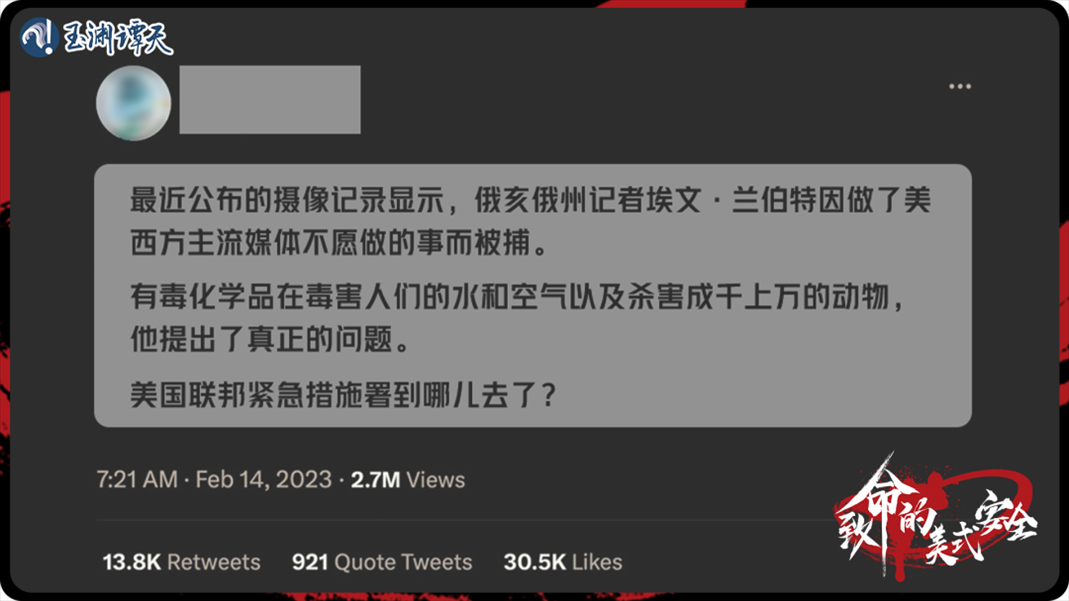 譚主聯(lián)合大數(shù)據(jù)機(jī)構(gòu)做了分析,推特話題#Ohio下的19701條推特,看具體議題,多在聚焦引燃有毒化學(xué)品后的風(fēng)險(xiǎn),其中“環(huán)境安全”及“居民人身安全”的安全焦慮占比56%。
