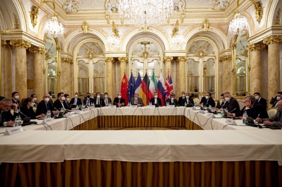 這是2021年12月27日在奧地利維也納拍攝的伊朗核問題全面協(xié)議聯(lián)合委員會(huì)政治總司長(zhǎng)級(jí)會(huì)議現(xiàn)場(chǎng)。新華社發(fā)(歐盟駐維也納代表團(tuán)供圖)