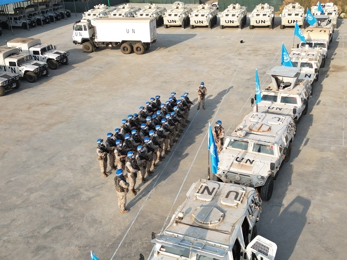 2022年12月,“劉老莊連”隨中國第九批赴南蘇丹(朱巴)維和步兵營奔赴維和戰(zhàn)場,重點擔(dān)負(fù)警戒巡邏、武裝護(hù)衛(wèi)、隔離沖突等維和任務(wù)。截至目前,“劉老莊連”累計行程1500余公里,高標(biāo)準(zhǔn)完成了各項授權(quán)任務(wù),受到聯(lián)南蘇團(tuán)各級高度贊揚。這也是英雄的“劉老莊連”戰(zhàn)旗第一次飄揚在非洲大地。