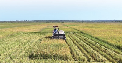 中國—烏干達(dá)農(nóng)業(yè)合作產(chǎn)業(yè)園里,員工正在收割豐收的旱稻。中國—烏干達(dá)農(nóng)業(yè)合作產(chǎn)業(yè)園供圖