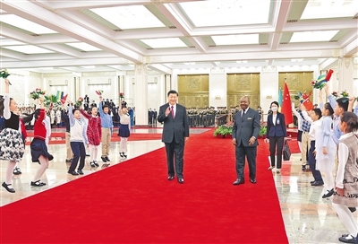 會談前,習近平在人民大會堂北大廳為邦戈舉行歡迎儀式。