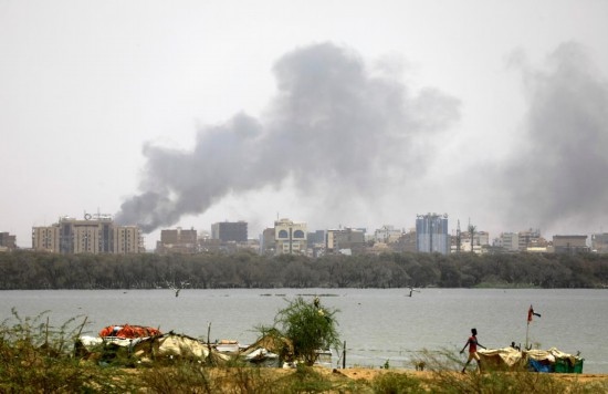 4月15日,蘇丹首都喀土穆響起激烈槍聲,間或可聽見炮聲。新華社發(fā)(穆罕默德·海德爾攝)