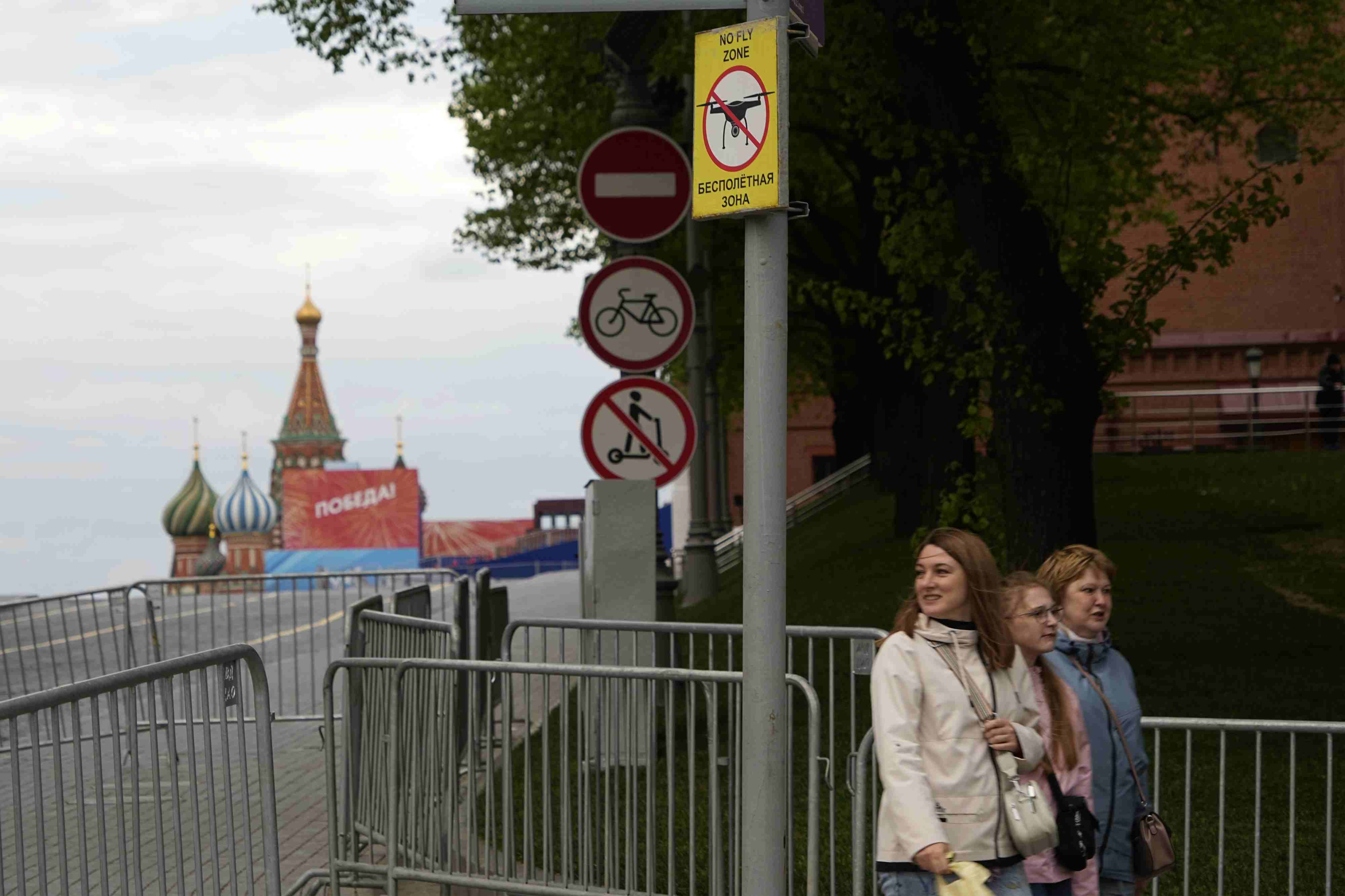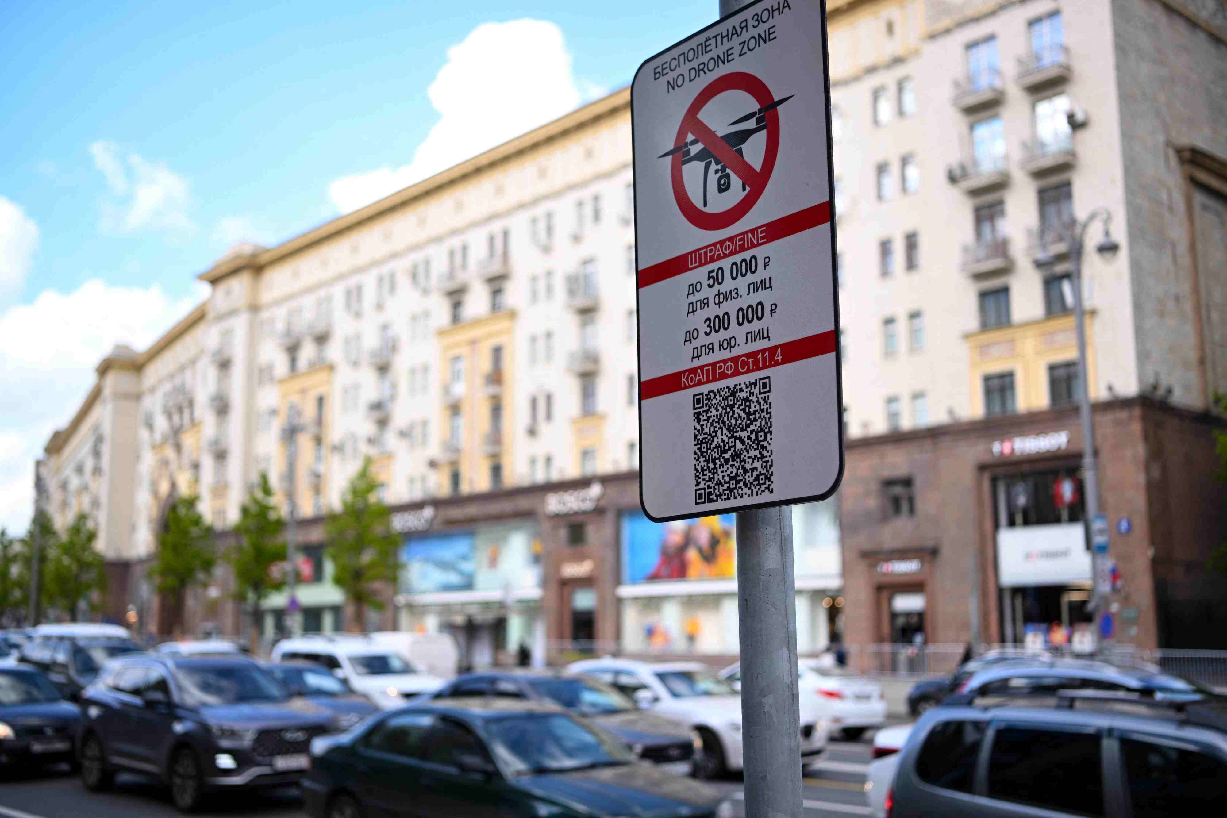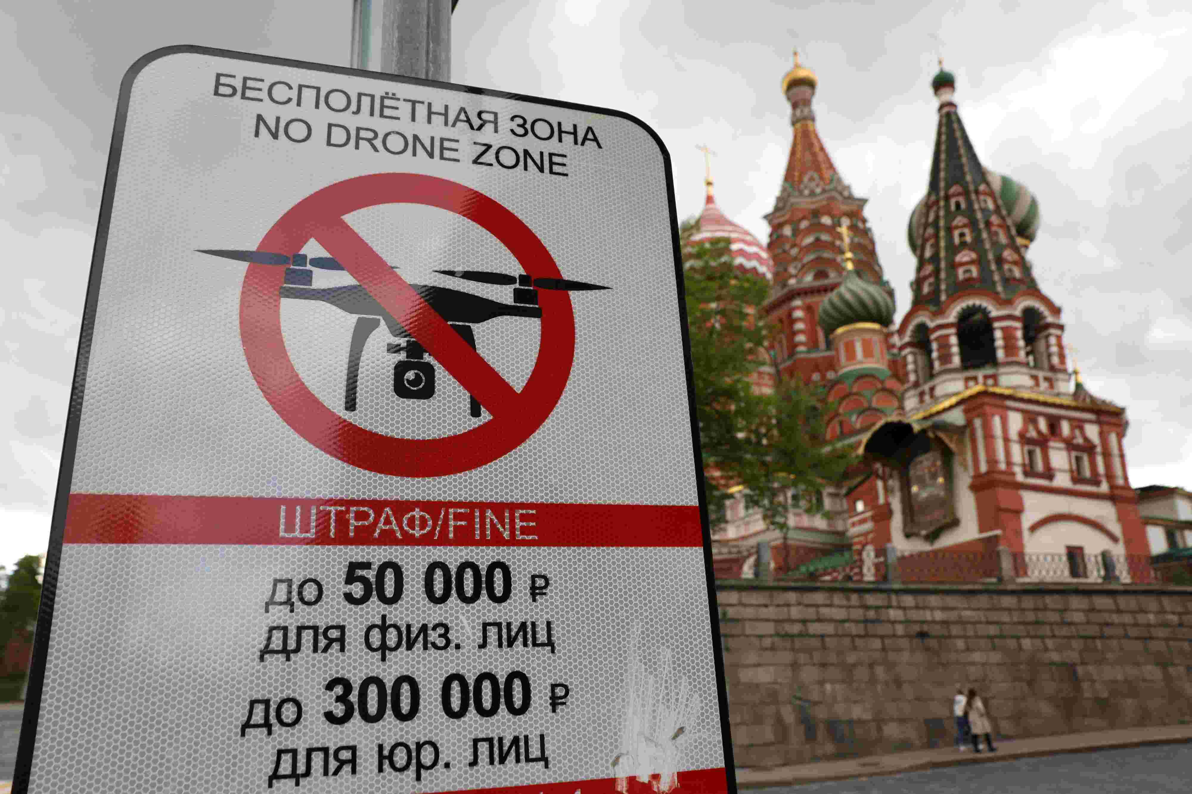 當地時間2023年5月3日,俄羅斯莫斯科,莫斯科市中心懸掛的“無人駕駛飛機禁飛區(qū)”的標志,禁止無人機在該地區(qū)飛行??死锬妨謱m遭無人機襲擊后,莫斯科市長宣布禁止未經授權的無人機在俄羅斯首都上空飛行。 視覺中國