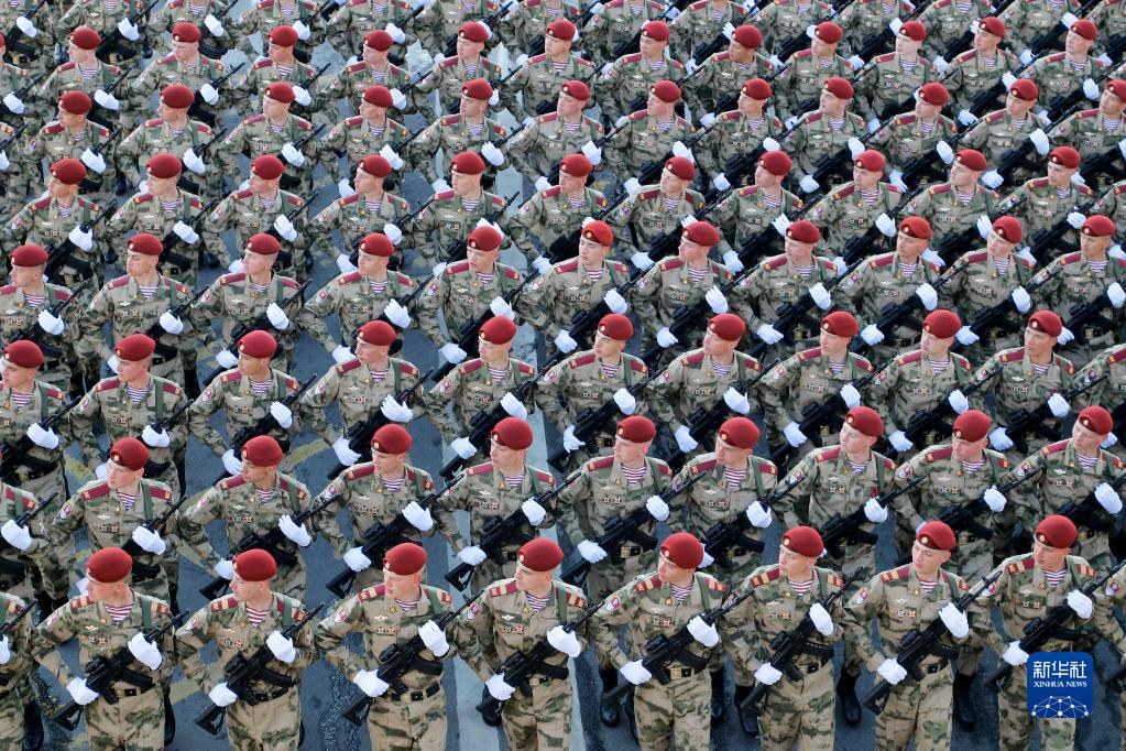 當日,莫斯科舉行衛(wèi)國戰(zhàn)爭勝利日閱兵式彩排。