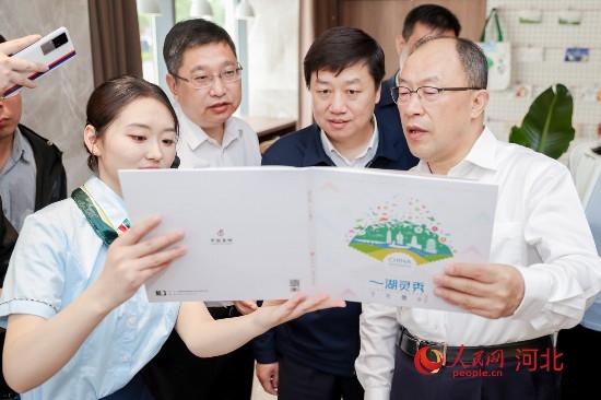 與會領導在欣賞郵票冊子。 人民網(wǎng) 周博攝