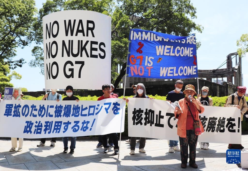 “不做戰(zhàn)爭幫兇”“不要G7”……14日,200多名日本民眾舉著各式標(biāo)語,在廣島和平紀(jì)念公園原子彈轟炸遺址舉行集會,強烈抗議七國集團(tuán)(G7)峰會將在廣島召開。