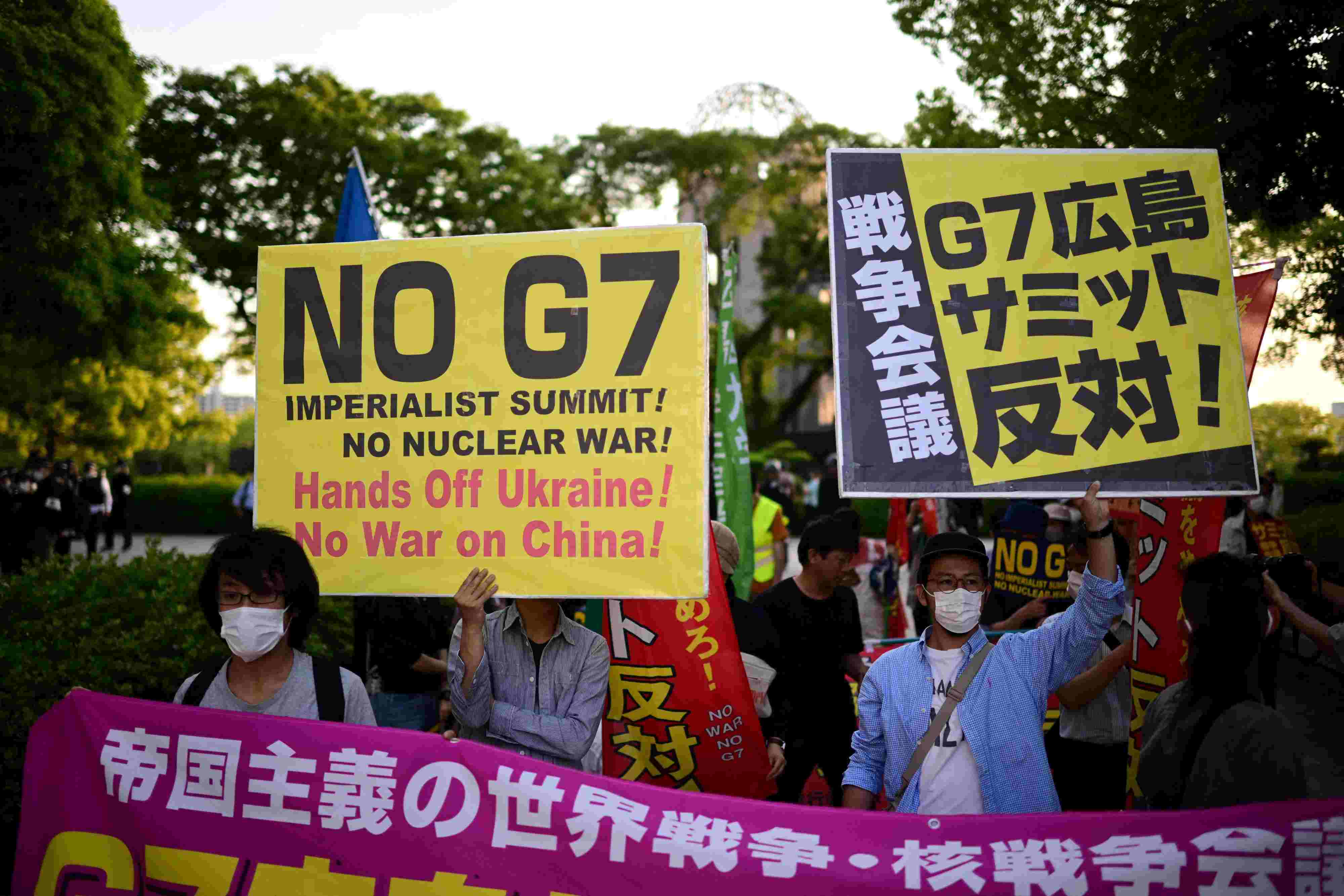 日本民眾抗議七國集團(tuán)峰會在廣島召開