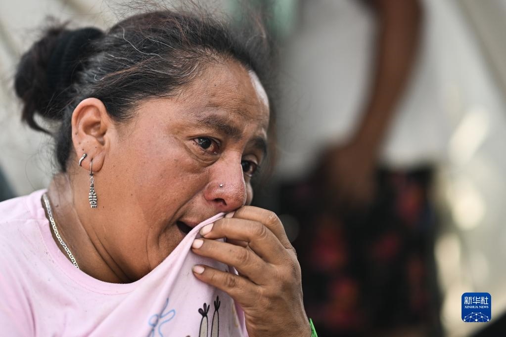 5月16日,一名移民在美墨邊境城市墨西哥雷諾薩的一處收容所內(nèi)落淚。   新華社記者 辛悅衛(wèi) 攝