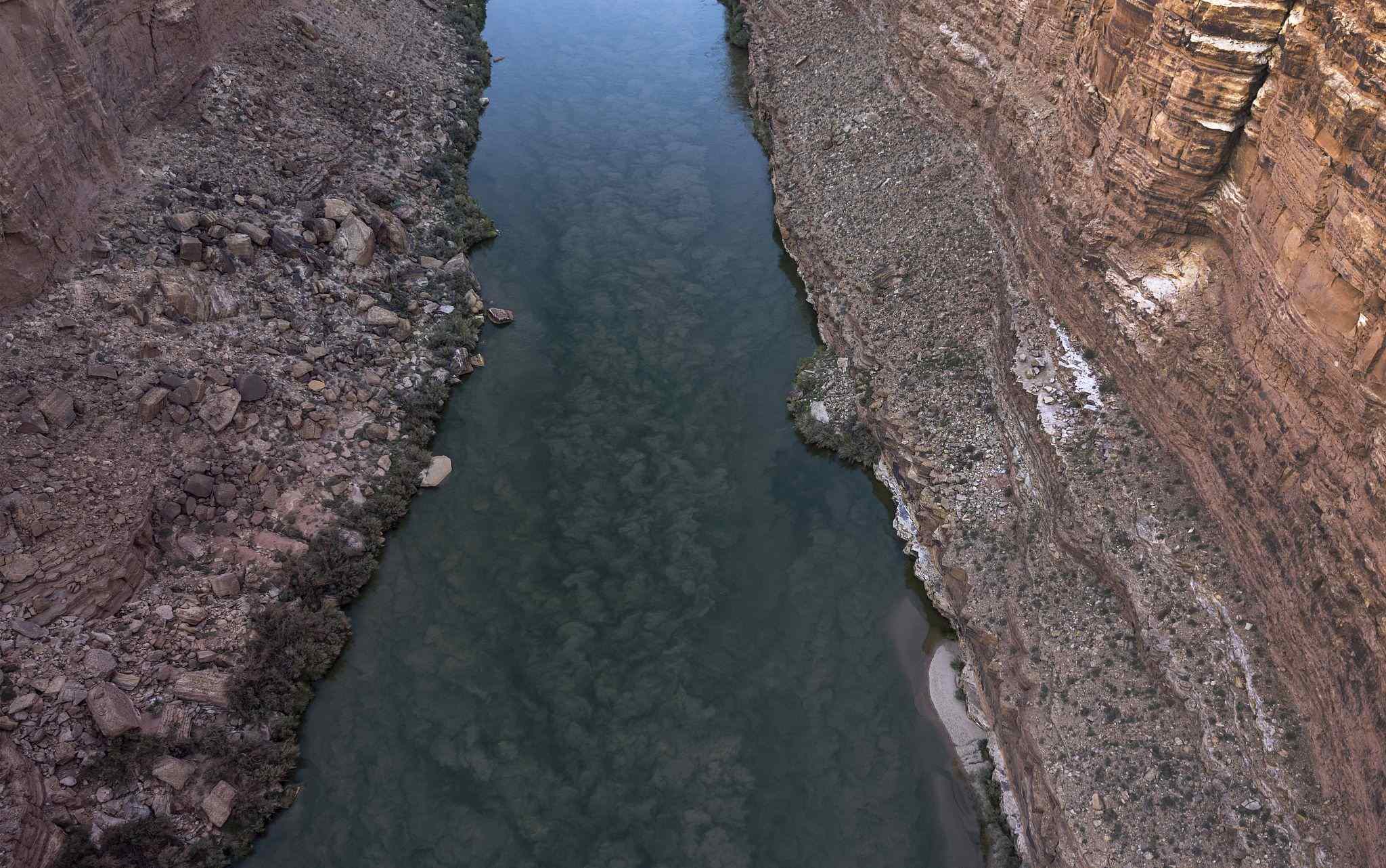 當(dāng)?shù)貢r(shí)間2022年8月31日,美國(guó)亞利桑那州,鮑威爾湖下游的科羅拉多河通過(guò)大理石峽谷時(shí),沉積物被攪動(dòng)。