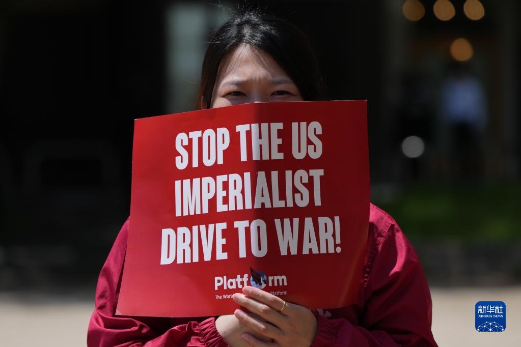 5月21日,民眾聚集在日本廣島袋町公園,抗議七國集團(tuán)峰會。   新華社記者 張笑宇 攝