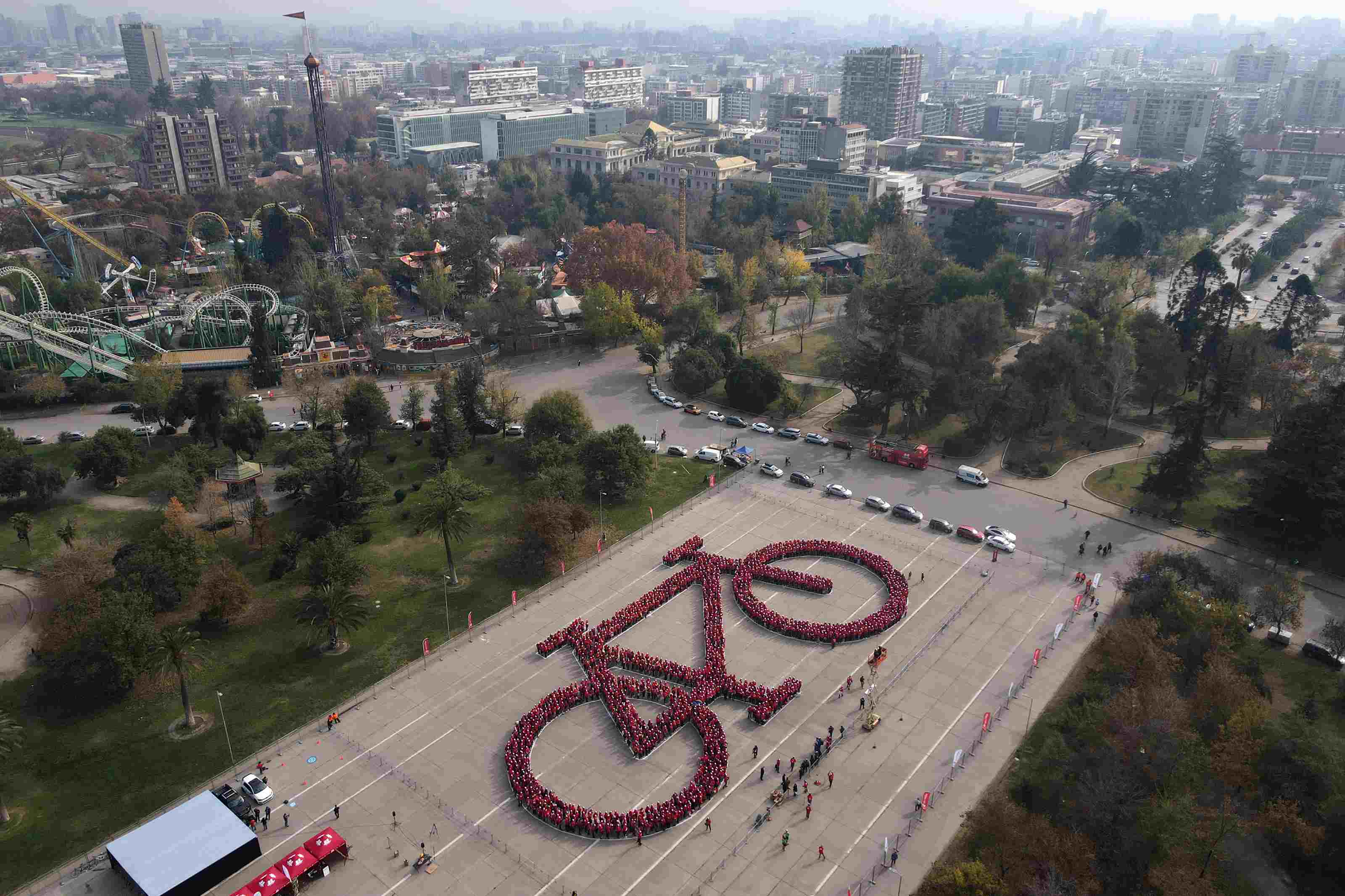 5月27日,智利圣地亞哥,數(shù)千人組成“最大”的自行車圖像,試圖打破吉尼斯世界紀(jì)錄。據(jù)悉,這項(xiàng)活動(dòng)是為了宣傳即將于10月20日至11月5日在當(dāng)?shù)嘏e行的2023年泛美運(yùn)動(dòng)會(huì), 視覺(jué)中國(guó)