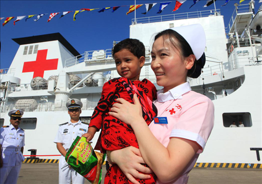 2010年,中國(guó)海軍“和平方舟”號(hào)醫(yī)院船首次來(lái)到孟加拉國(guó)吉大港開(kāi)展免費(fèi)醫(yī)療服務(wù)時(shí),一名患有先天性心臟病的高危產(chǎn)婦即將分娩,一度生命垂危。接到求助后,醫(yī)院船第一時(shí)間派出軍醫(yī)赴當(dāng)?shù)蒯t(yī)院,頂著巨大壓力進(jìn)行剖腹產(chǎn)手術(shù),最終母女平安。為表感激,孩子的父親為其起名“沁”(Chin),孟語(yǔ)意思為“中國(guó)”。