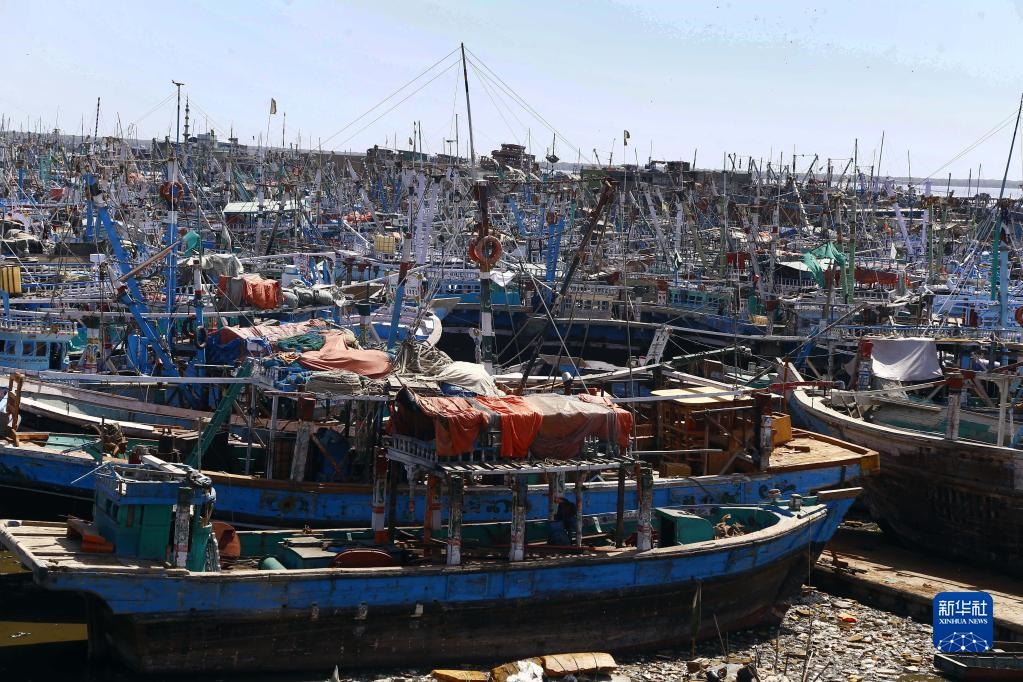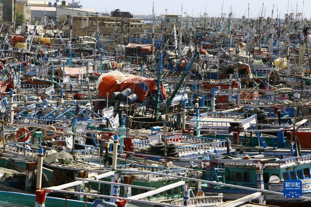 6月13日,在巴基斯坦信德省特達地區(qū),漁船停泊在漁港內(nèi)。