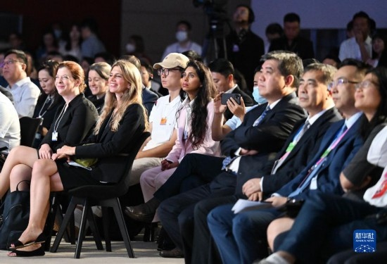 這是6月29日拍攝的第十四屆夏季達(dá)沃斯論壇閉幕全會(huì)現(xiàn)場(chǎng)。新華社記者 趙子碩 攝