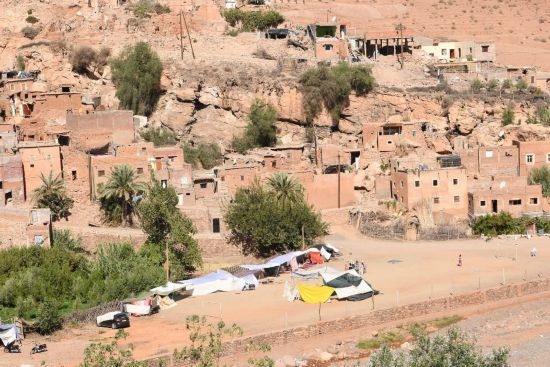 這是9月10日在摩洛哥震中附近的艾茲魯村拍攝的一處臨時(shí)安置點(diǎn)。新華社發(fā)(艾薩攝)
