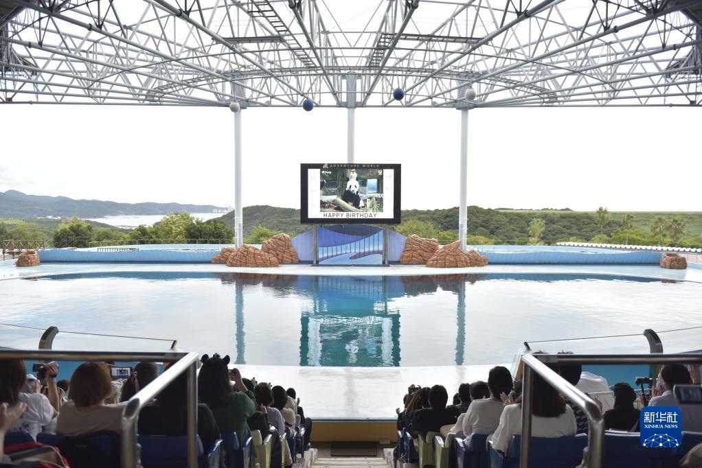 9月14日,觀眾在日本和歌山縣白浜冒險(xiǎn)世界游樂園參加大熊貓“永明”31歲生日會(huì)。新華社發(fā)(中國駐大阪總領(lǐng)館供圖)