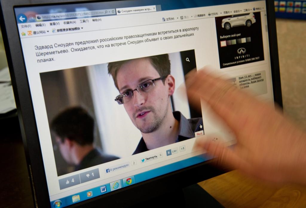 2013年7月12日,新聞工作者在俄羅斯首都莫斯科打開網(wǎng)頁瀏覽斯諾登的訊息。2013年,美國前防務(wù)承包商雇員愛德華·斯諾登向媒體曝光美方“棱鏡”大規(guī)模秘密監(jiān)聽項(xiàng)目。新華社記者姜克紅 攝