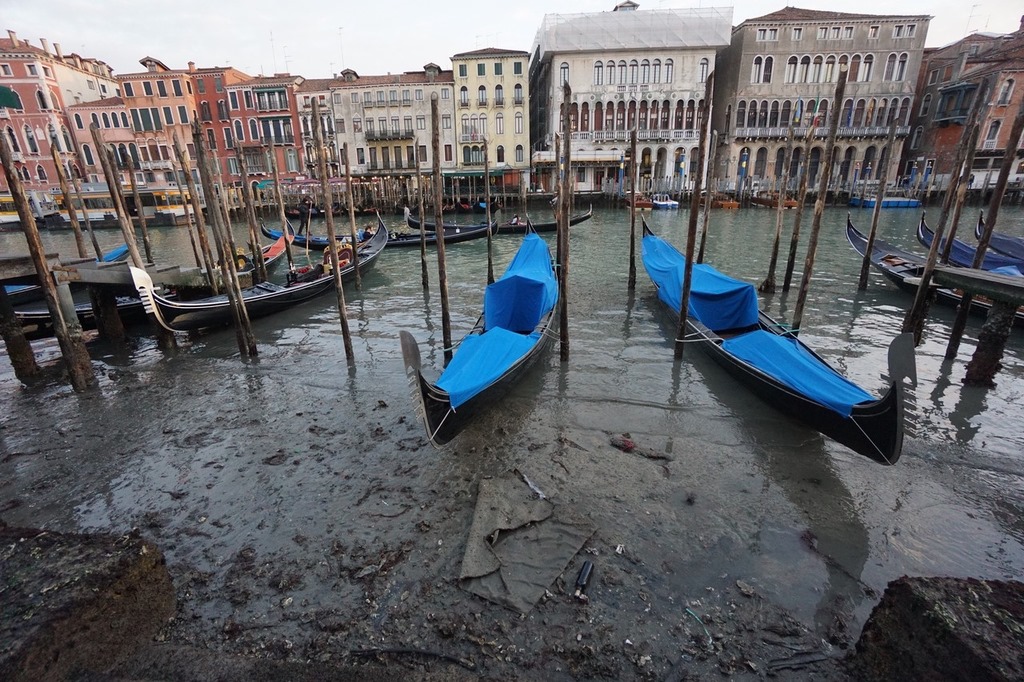 當(dāng)?shù)貢r間2023年2月6日,意大利威尼斯,遭遇氣候干旱,運河干涸,游船停泊。